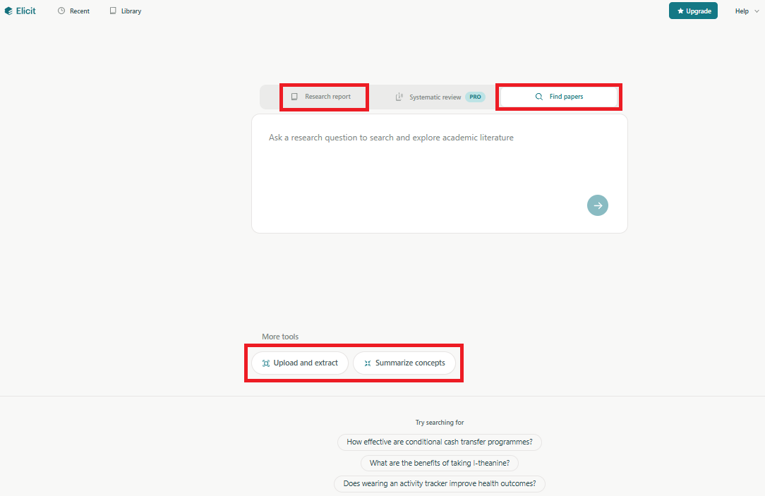 On the Elicit’s webpage, you will find the five steps to get started with your research: