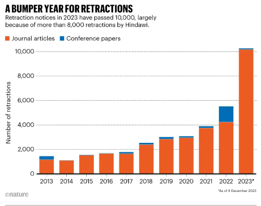 In 2023, 11,884 entries were recorded in the Retraction Watch database. An analytical message in Nature noted that the bulk of the retractions were from journals published by Hindawi, a subsidiary of Wiley. Thus, Hindawi journals retracted more than 8,000 articles in 2023 due to a compromised peer-review process and systematic manipulation of publications. As a result, after a mass retraction, Wiley announced that it would stop using the Hindawi brand, and close 19 scientific journals, and include the remaining 200 in its main portfolio. In 2024, the number of retractions significantly decreased - according to the latest data, there were about 4,150. However, the issue is still relevant.