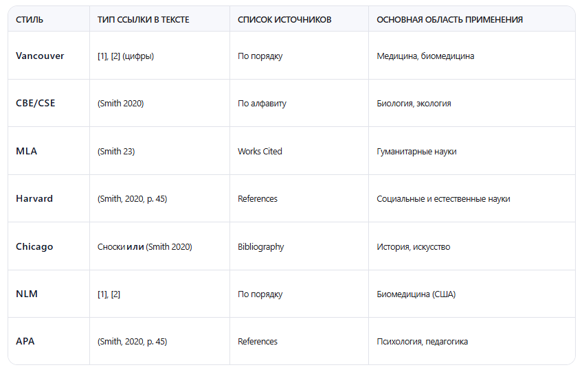 В разных странах и научных дисциплинах приняты разные правила оформления таких ссылок. Эти правила называются стилями цитирования. В этой заметке мы разберем наиболее распространенные зарубежные стили, объясним, чем они отличаются, где применяются и как выглядят на примерах.