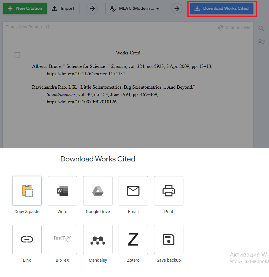 4.Экспортируете результат — в Word (.docx), PDF, BibTeX, RIS, или просто копируете готовый текст.